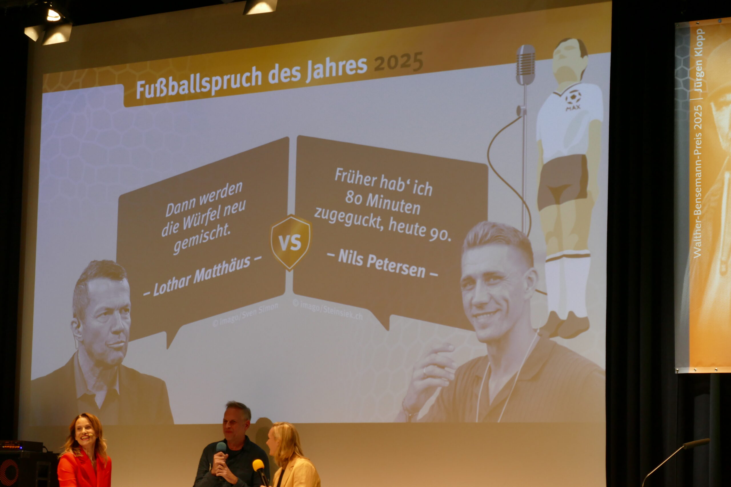Wer den Titel für den Fußballspruch des Jahres gewinnt, entscheidet das Publikum. Die Finalisten waren beide schon mehrfach nominiert: