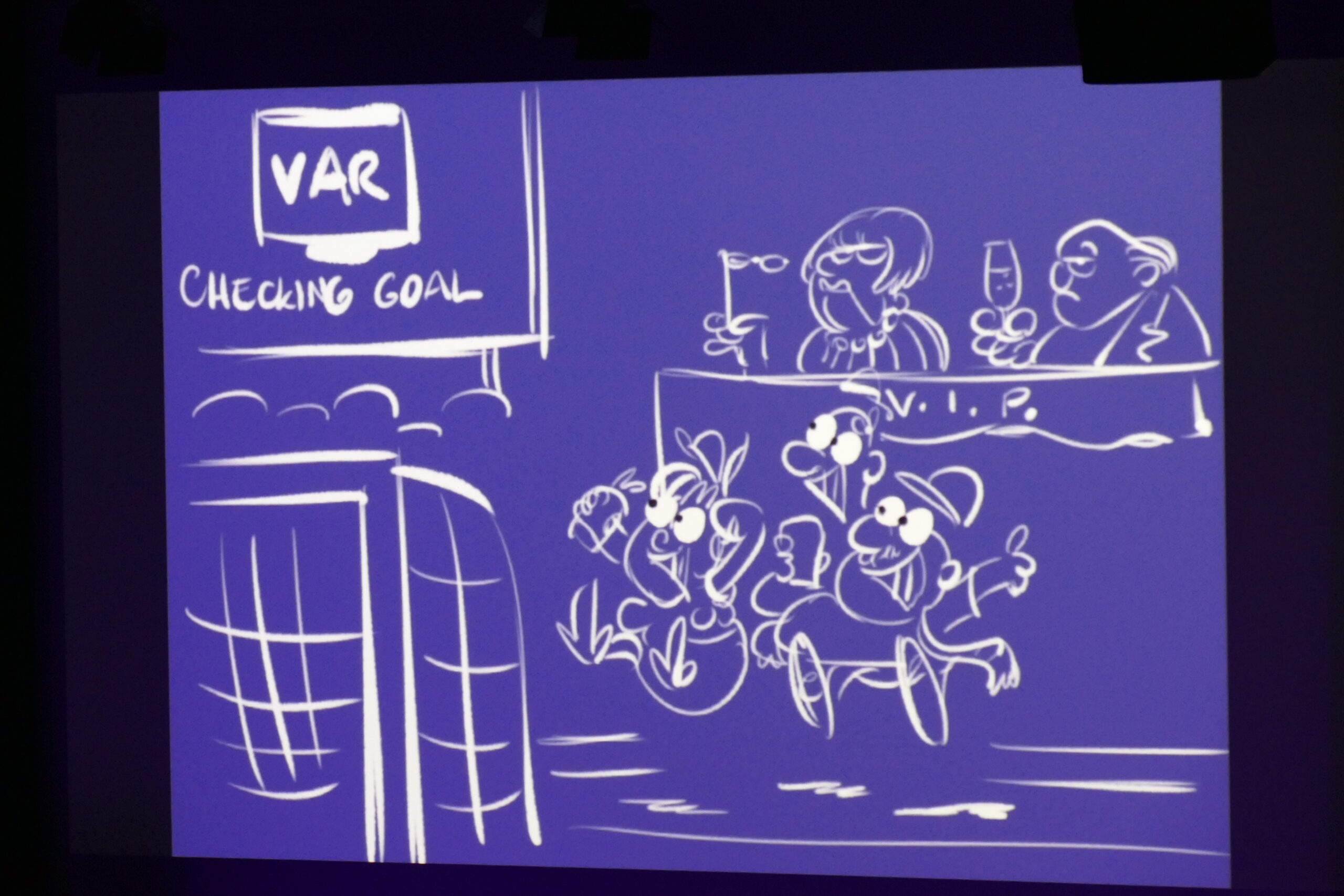 macht Fußball-Kultur auf der großen Leinwand sichtbar. Und natürlich wird das Publikum aktiv: Die Abstimmung zum Fußballspruch